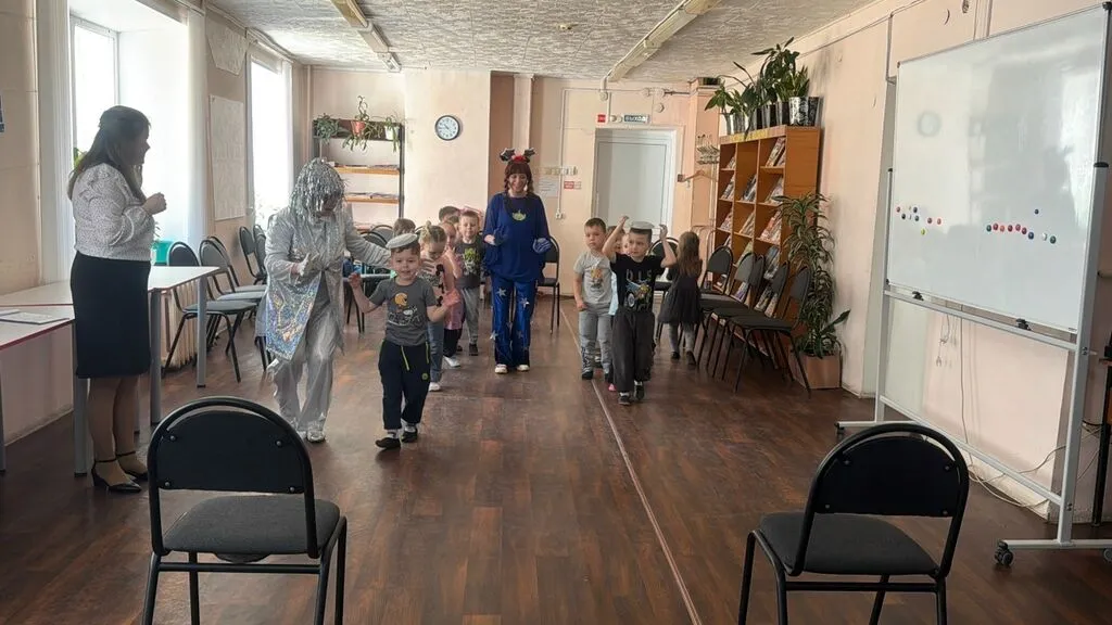 В Центральной библиотеке им. А.Л. Алейнова вновь произошло настоящее чудо! Среди книжных полок, где обычно царит тихая атмосфера, произошло нечто невероятное: совершила посадку летающая тарелка с двумя очаровательными инопланетянками — Альфией и Серебряной! Оказалось, гостьи получили особый космический сигнал: дети из детского сада «Сказка» очень хотели найти новых друзей. Этот искренний призыв разнёсся далеко по Галактике — и вот, преодолев миллионы световых лет, Альфия и Серебряна прибыли, чтобы подарить малышам незабываемые впечатления! Юные участники не смогли скрыть восторга, увидев гостей в мерцающих нарядах — словно настоящих звёзд! А Серебряна и Альфия (которую дети тут же ласково прозвали Звездочкой) сразу взялись за дело, предлагая самые удивительные космические игры и затеи.